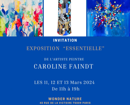 L’artiste peintre Caroline Faindt a été invitée par La Galerie événementielle à exposer ses dernières toiles du 19 au 22 Mai à l’espace Saint Roch à Paris.